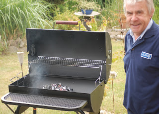 Presenten var en grill som givetvis invigdes ikväll. På menyn stod det grillade lyxburgare och korv från grillen och tillbehör till det var ungsbakade potatis, coldslow och sallad. Till kaffet blev det nybakade filodegsrullar fyllda med bla rabarber och mandelmassa. Mäktigt och fantastiskt gott.