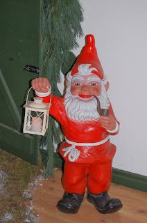 Ett grafikkort prytt med lite murgröna, ros och rosenstav fick vara en hatt.